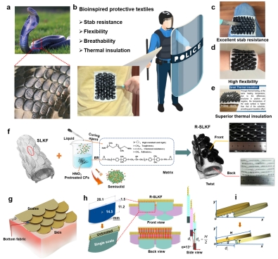 /针织技术教育部工程研究中心研究团队实现了以蛇皮为灵感的鳞片织物结构防护材料的大规模制备。本工作提出的复合鳞片织物由柔软的织物底层和相互重叠的片状化硬质壳层鳞片共同组成,克服了轻质高强与柔软舒适这对天然矛盾,实现了防护材料的长时间舒适性穿着,这有望为未来材料结构创新设计提供启示,并为个人防护装备在各个工业领域的发展提供巨大的实质性优势。相关成果以“Large-Scale Fabrication of Snake Skin-Inspired Protective Composite Textiles”为论文标题在线发表在《Advanced Fiber Materials》期刊(IF=16.1)。色情导航