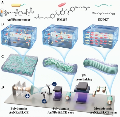 图2:AuNRs@LCE复合智能纱线的制备过程示意图