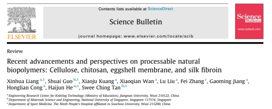 针织技术教育部工程研究中心蒋高明教授团队在综合性国际期刊《Science Bulletin》(IF=18.8)上发表题为“Recent advancements and perspectives on processable natural biopolymers: cellulose, chitosan, eggshell membrane, and silk fibroin”的综述论文。色情导航