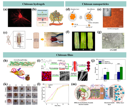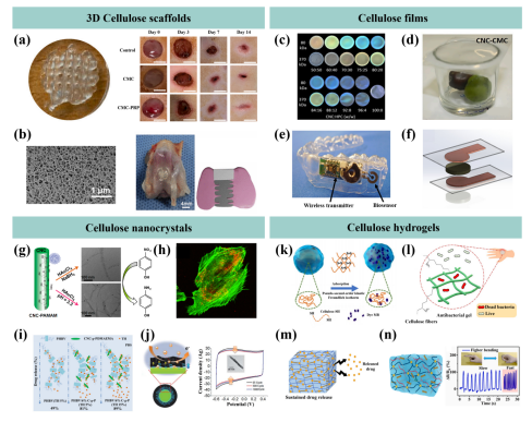 贺海军副教授课题组联合新加坡国立大学Tan Swee Ching教授团队,系统概述了可加工的天然生物聚合物开发高附加值材料的重要性:从微观结构出发,介绍了四种天然生物质聚合物(如纤维素、壳聚糖、蛋壳膜和丝素蛋白)的天然优势、性能、纯化理念和方法;重点概述了天然生物质聚合物的加工方法和后功能化策略;简述了这些可加工的天然生物质聚合物在生物医学工程、生物传感器、环境工程和能源等领域的潜在应用。最后,对可加工的天然生物质聚合物进行了总结和展望,指出了它们在不同应用领域的挑战,强调了它们在未来商业化道路上的重要性和应用前景。通过对这一新兴研究领域的最新动态进行总结,旨在帮助研究者全面了解该领域的研究进展,从“结构-制备-性能-应用”多层级推动可加工的天然生物聚合物的发展进程。