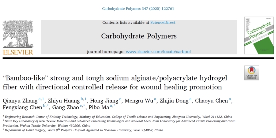 针织技术教育部工程研究中心蒋高明教授团队在材料领域一区TOP期刊《Carbohydrate Polymers》(IF=10.7)上发表题为““Bamboo-like” Strong and Tough Sodium Alginate/Polyacrylate Hydrogel Fiber with Directional Controlled Release for Wound Healing Promotion”的研究论文。色情导航