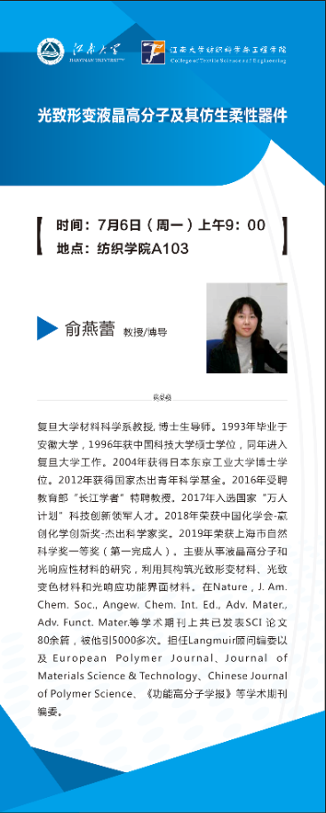 7月6日学术报告:光致形变液晶高分子及其仿生柔性器件