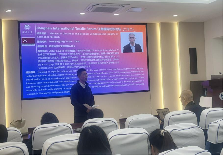 Artur Cavaco-Paulo教授是全球纺织生物技术联盟创始人及主席,长期致力于纤维与聚合物的生物加工、酶催化、蛋白质纤维改性及药物递送等领域的研究。他创办的Khairpep公司现隶属于联合利华高端业务部,同时他也是葡萄牙米尼奥大学孵化企业Solfarcos Ltd.的主要股东、首席科学家与首席执行官。自2011年起,Artur教授与我校建立合作,定期来访讲学、开展联合研究,多年来与学院在蛋白质纤维改性、纺织生物技术等领域开展了深入的学术交流与联合研究。依托学院“外专工作室”平台,双方在人才培养、科研攻关及成果转化等方面持续深化合作,取得了丰硕成果。