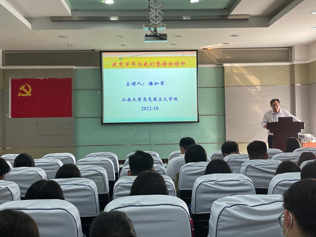 马克思主义学院副院长潘加军主讲。他从“中国共产党为什么能,中国特色社会主义为什么好,归根到底是因为马克思主义行,是中国化时代化的马克思主义行”出发,带领学员们由浅及深地理解中国共产党成立的伟大历史意义。