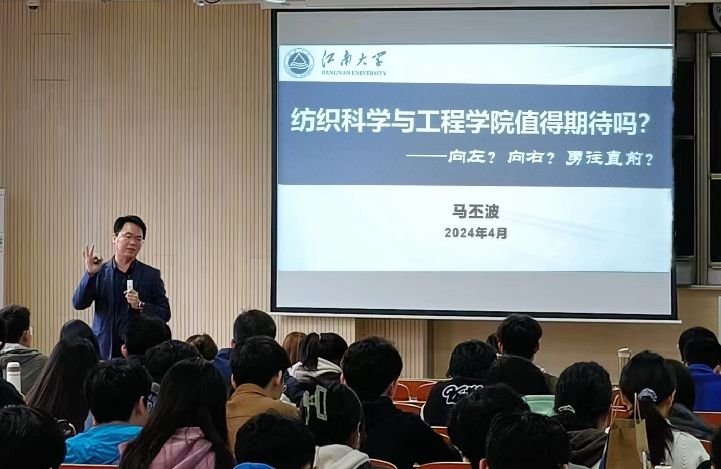 马丕波从“色情导航 的前景如何?”切入,为同学们详细分析了学院近年来升学及就业情况。他勉励同学们“早立志,要明确自己的目标,而非盲目地随大流;早准备,提前做好能力准备,防止‘书到用时方恨少’;早行动,提前做好职业生涯规划,并踏实做好践行。”