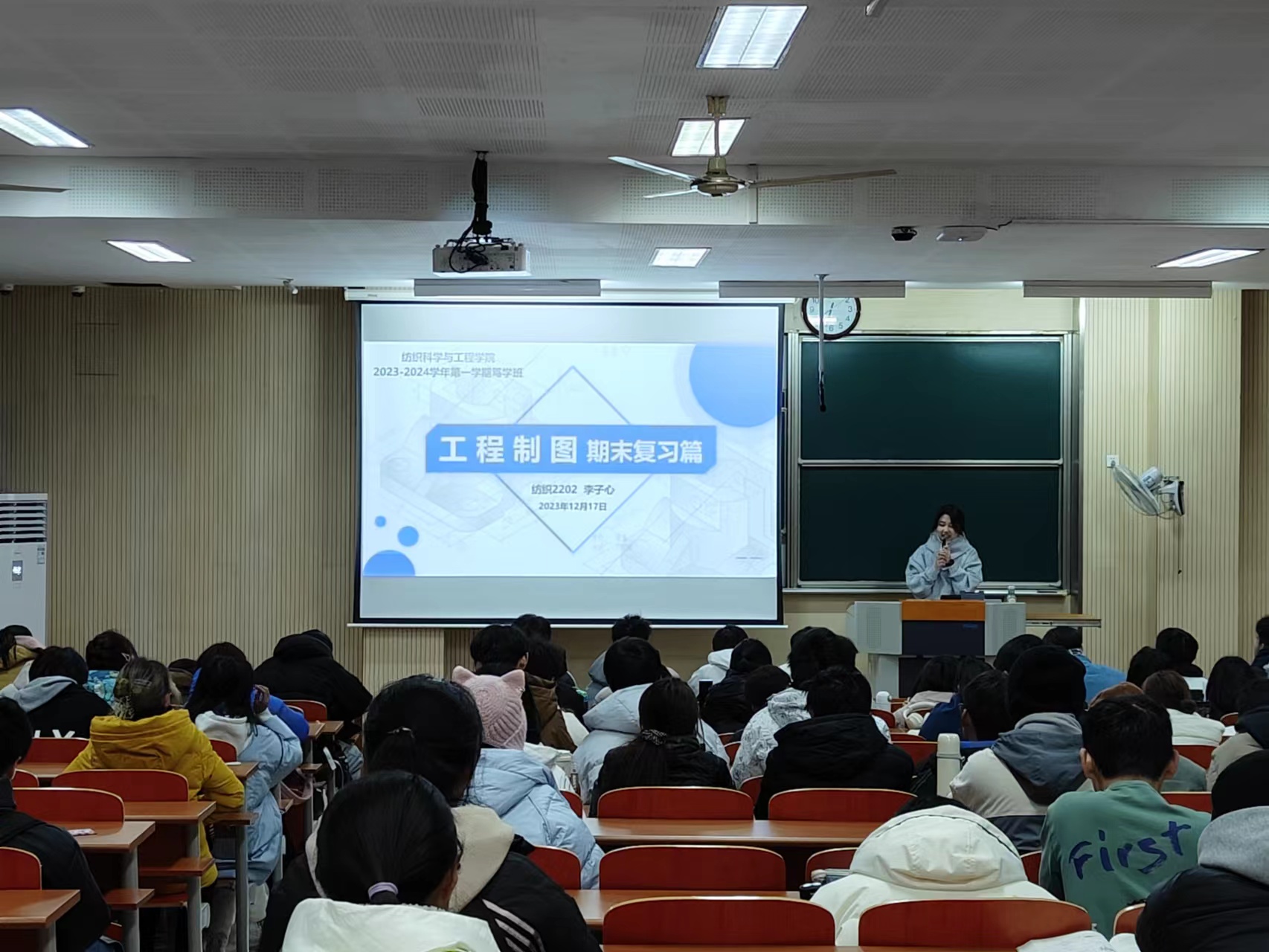 每位学业辅导员根据自身擅长学科进行讲解,余嘉慧通过板书与ppt相结合的的形式梳理高等数学的基础知识点,顾嘉航则以幽默风趣的授课方式为同学们讲解了高等数学的期中试题。许昀娟强调了学好工程制图的关键在于能够将图形想象出来,她通过还原课本图像的方式进行讲解,令同学们受益匪浅。而李子心则通过重点知识点回顾和经典模型讲解的方式帮助同学们回顾了基础知识,让同学们对课本内容有了更深刻的理解。