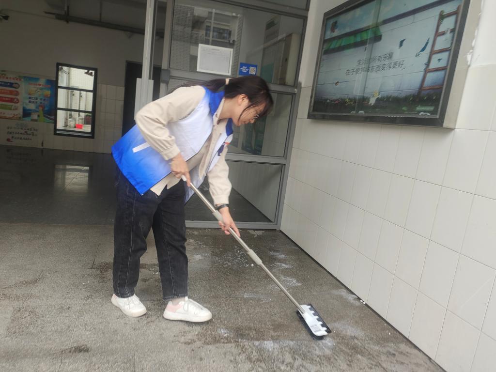 此外,学院青年志愿者协会也针对园区公共区域的卫生问题,组织学生志愿者开展校园环境卫生主题教育实践活动。在不影响居住区域正常生活的前提下,学生志愿者对公共区域的地板楼梯进行清洁,对楼梯扶手进行擦拭,以实际行动践行了劳动精神,宿舍园区的居住环境得到了改善。校园环境卫生主题教育实践活动,一定程度上消除了园区安全隐患,为同学们的正常学习和生活提供了更多保障。