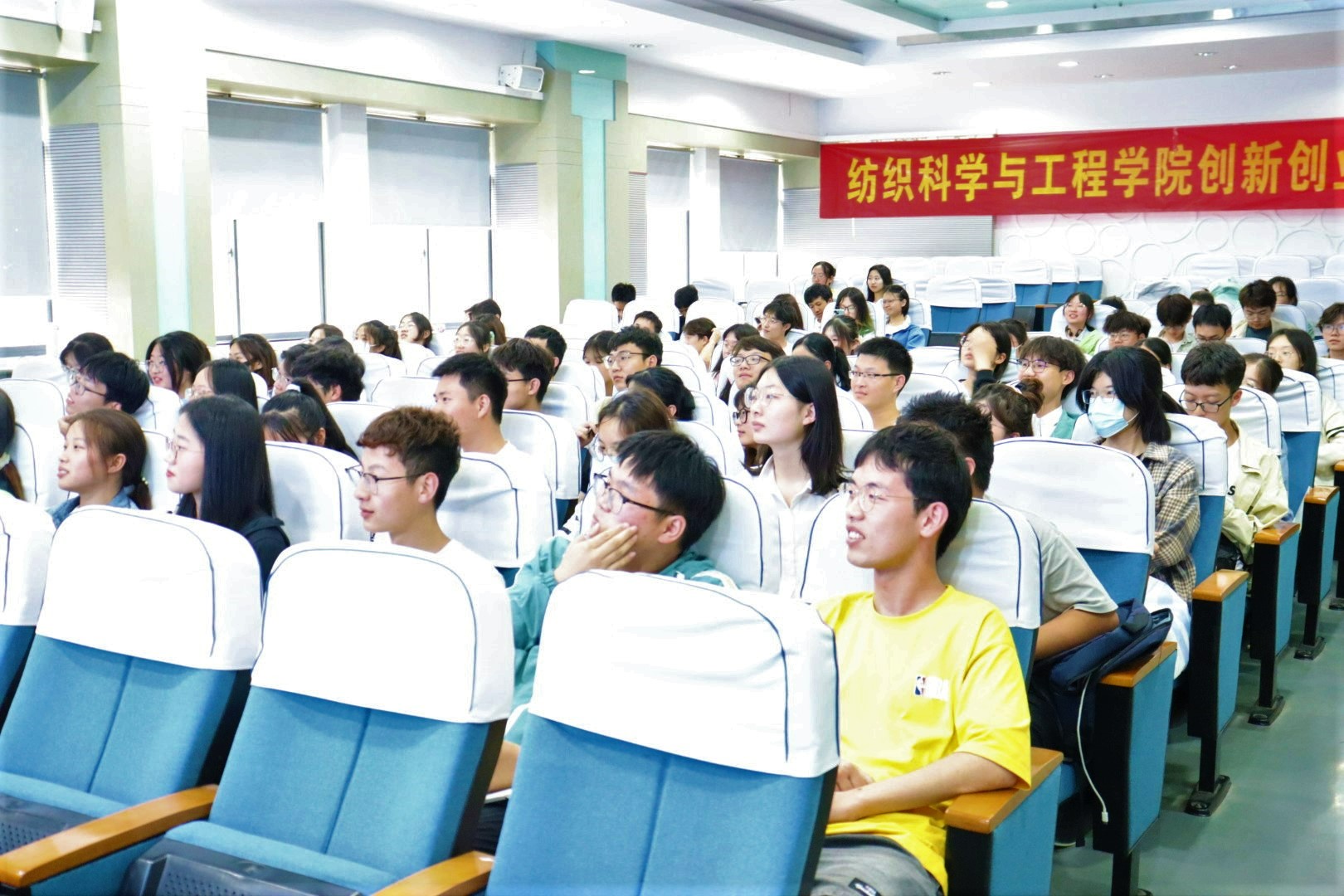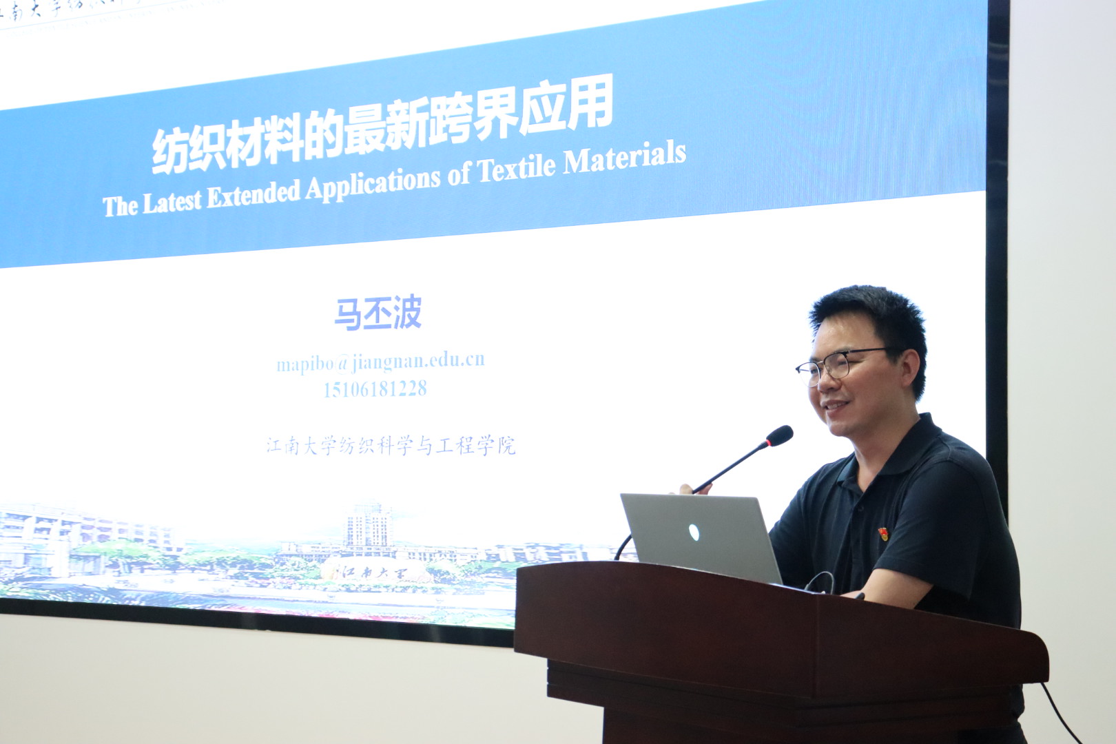 副院长马丕波进行了专业学术讲座。马丕波教授以“纺织材料的最新跨界应用”为主题,结合个人求学经历,生动诙谐地向同学们介绍了纺织工程和轻化工程专业、中国纺织工业的现状以及学院在研的各类纺织结构织物。他指出,纺织行业已不是传统的纺纱织布,而是在与多学科交叉融合的过程中,朝着“面向世界科技前沿、面向经济主战场、面向国家重大需求、面向人民生命健康”的方向发展。除此之外,他还向学生们介绍了几个学生培养案例,激励着同学们向更高更远的方向奋进,纺织未来有无限可能。