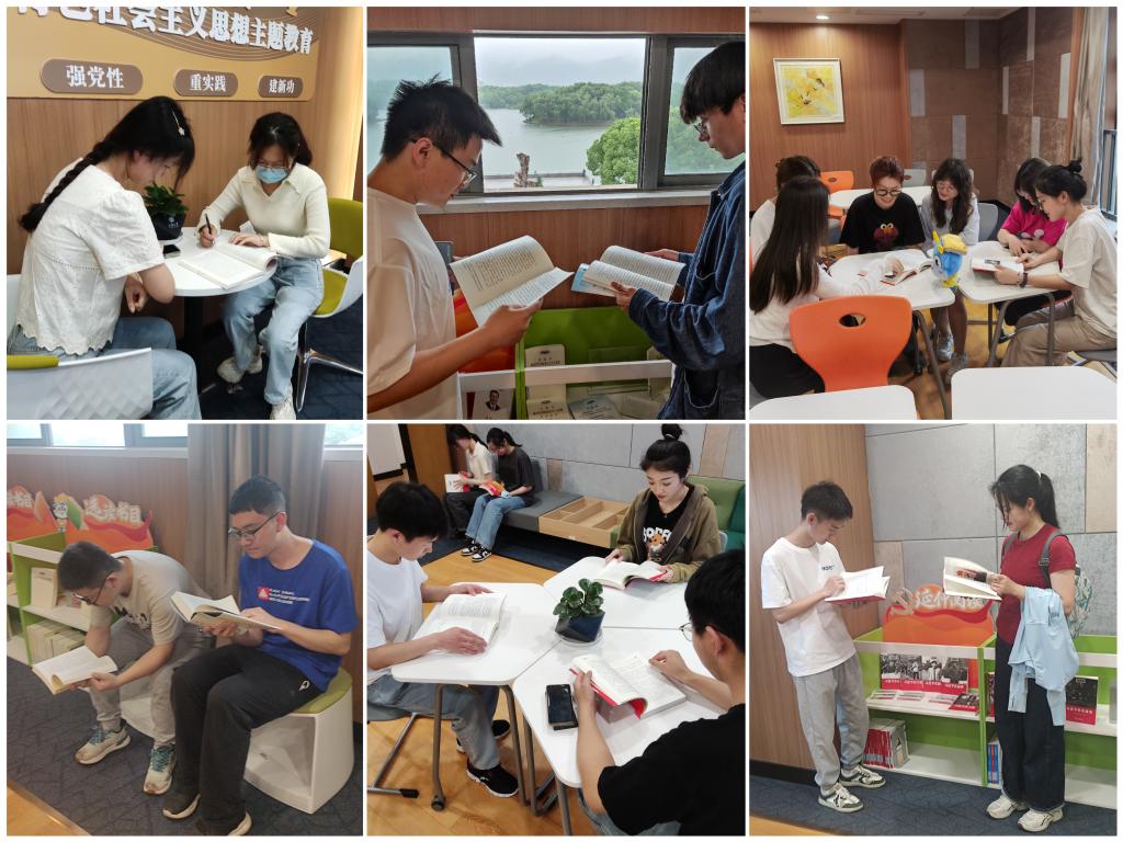 两个支部的同志们参观了“学习书房”,阅读了《习近平在正定》等习近平总书记成长历程系列采访实录、习近平总书记关于教育的重要论述等各类专题论述、学者学习论丛等延伸阅读书目。大家静下心来,认真阅读、潜心思考,交流阅读心得。硕士第三党支部党员罗来鹏表示:“习近平总书记以马克思主义政治家、思想家的深刻洞察力、敏锐判断力、理论创造力和战略定力,提出了一系列具有开创性意义的新理念新思想新战略,为新时代中国特色社会主义思想的创立发挥了决定性作用、作出了决定性贡献,我们应该坚定不移跟党走,为中华民族伟大复兴而努力奋斗”。