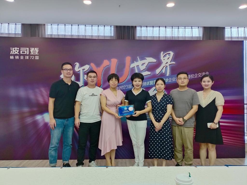 活动最后,波司登集团执行总裁梅冬女士发表讲话,她对高校师生来到波司登集团参加本次活动表示热烈欢迎和诚挚感谢。她表示波司登集团是一家特别重视科技创新和人才培养的企业,特别在大学生群体中,尊重高潜力人才的能力价值,全力打通了从毕业生到核心高管的发展通道。梅总真诚期待有更多优秀的年轻人加入波司登,找准职场坐标,实现个人价值,为民族品牌助力增益。波司登集团为与会高校颁发“大学生就业最佳战略合作伙伴”奖章,校企双方还共同签署就业合作备忘录,同时我校还为波司登集团颁发“大学生就业最佳战略合作伙伴”纪念牌。