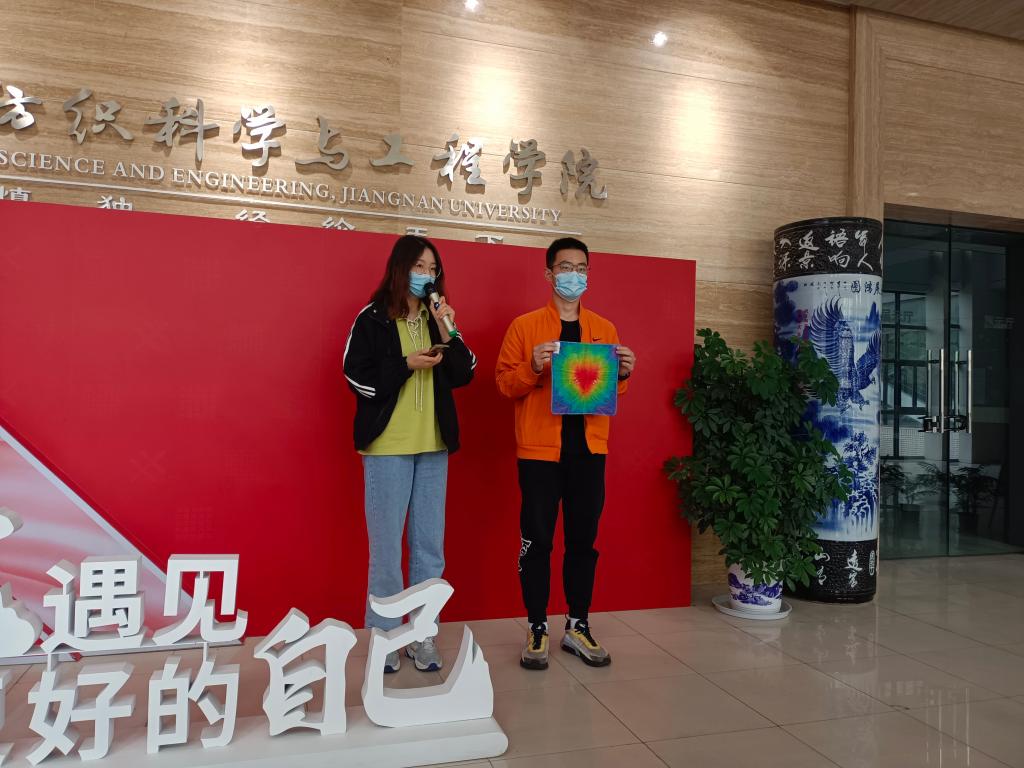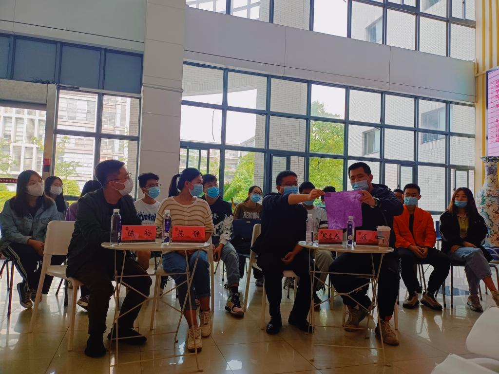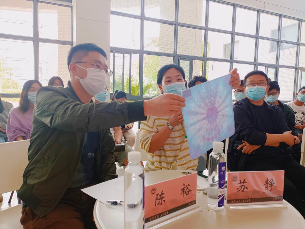 在学院A区一楼大厅举办“青春芳华”创意扎染设计大赛。活动邀请学院轻化工程系殷允杰老师、苏静老师、顾鹏老师担任点评嘉宾,学院分团委书记陈裕及参赛团队同学共计40余人参加。