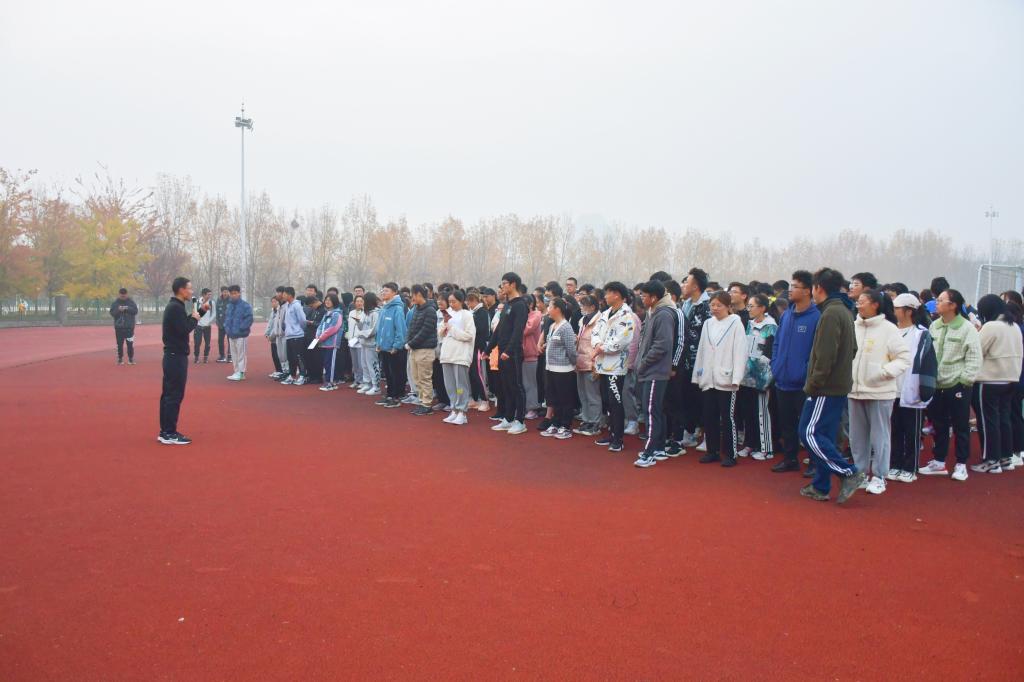 晨跑活动一经发布,受到广大新生热烈欢迎,共有243名新生自愿报名参加晨跑活动。迎着清晨的第一缕阳光,同学们在辅导员张旭的带领下井然有序的集聚在西北操场上。在晨跑活动开始前,体育委员带领同学们进行了集体热身运动,旨在帮助大家养成跑前热身的良好习惯。热身结束后,张旭老师和同学们一同站上跑道,随着一声鸣笛声响起,师生们一起冲出起跑线,奋力奔向前方,奔跑的身影承载同学们对大学生活的期待和对美好未来的憧憬。