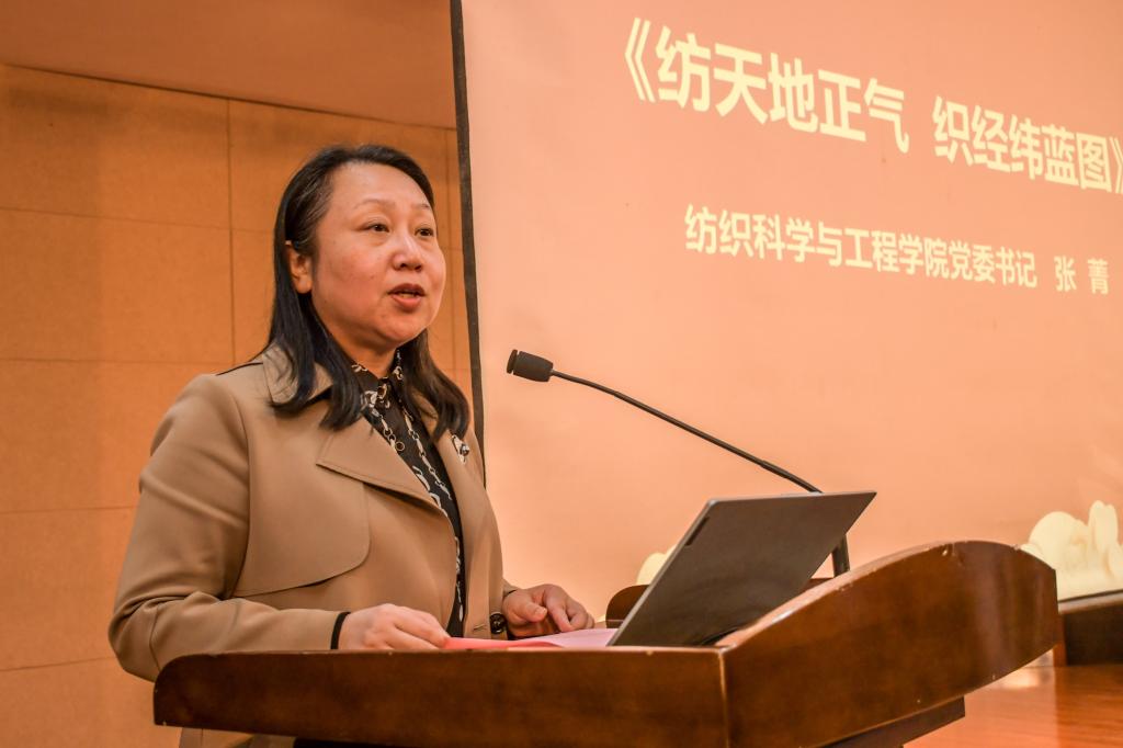 院党委书记张菁代表学院全体师生对290名新同学加入纺院大家庭表示欢迎。张菁就如何在大学阶段最大可能地去实现人生价值给同学们提出了三点建议:第一,砥砺“位卑未敢忘忧国”的家国情怀,坚定理想信念,树立高远志向,厚植爱国情怀;第二,磨炼“咬定青山不放松”的处世定力,保持定力、严格自律,抵得住诱惑,耐得住寂寞,在人生的康庄大道上矢志不渝、奋发有为;第三,践行“俯首甘为孺子牛”的初心使命,接过历史的接力棒,承前启后,继往开来,初心不改,虽远不怠。