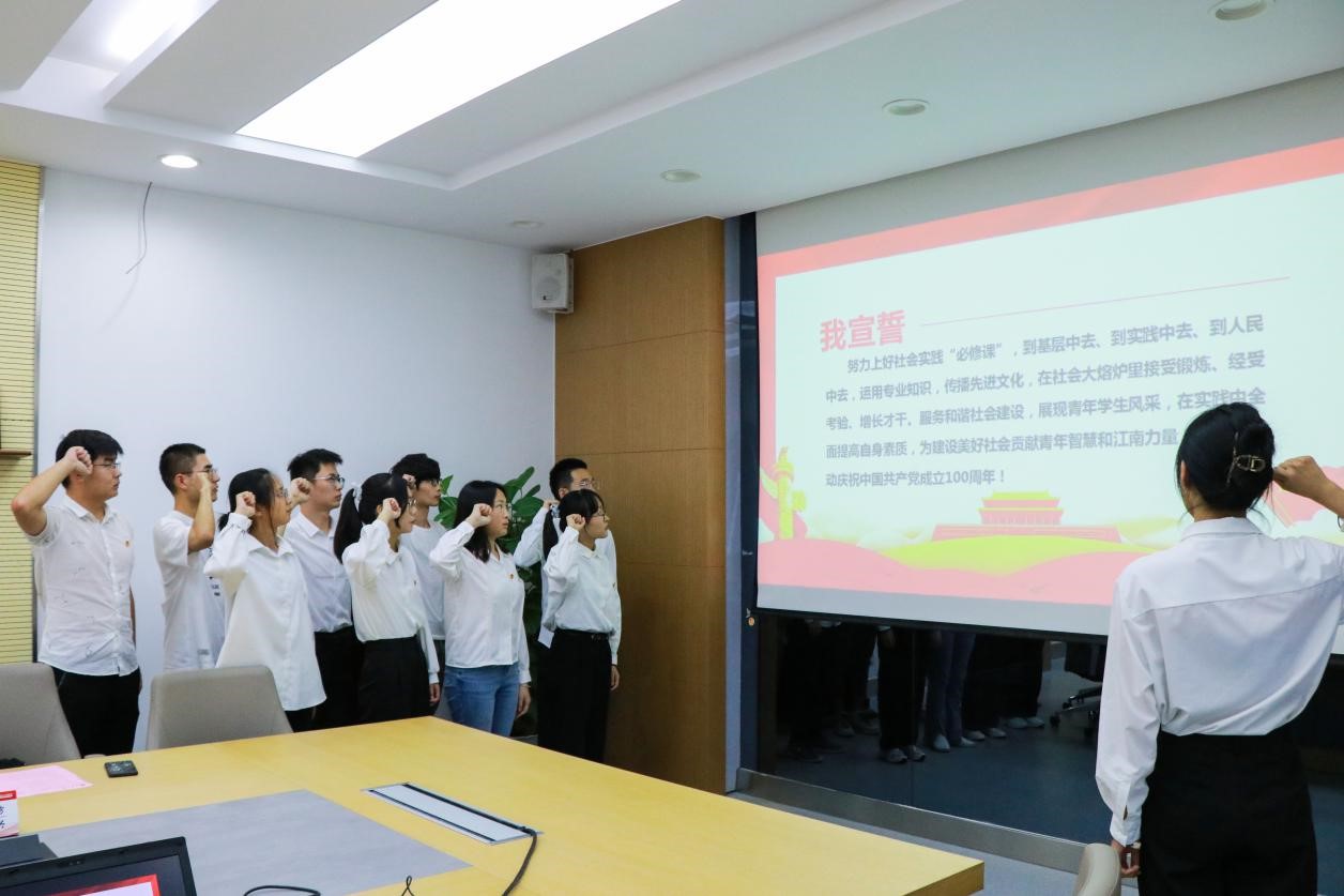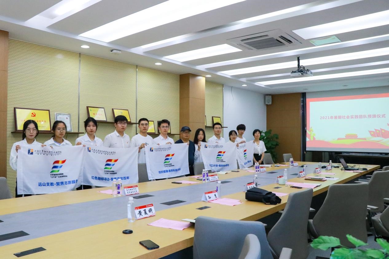 仪式上,全体人员歌唱了《光荣啊中国共青团》。由院分团委书记陈裕介绍了2021年暑期社会实践的基本情况,宣读了2021年暑期社会实践重点团队名单,包括省级重点团队“纺织援疆·聚焦科技支农”,院级重点团队“远山支教·聚焦志愿服务”、“红色地标寻访·聚焦建党100周年”、“卓工计划·聚焦专业建功”和“连片山区走访·聚焦乡村振兴”五支暑期社会实践重点团队。
