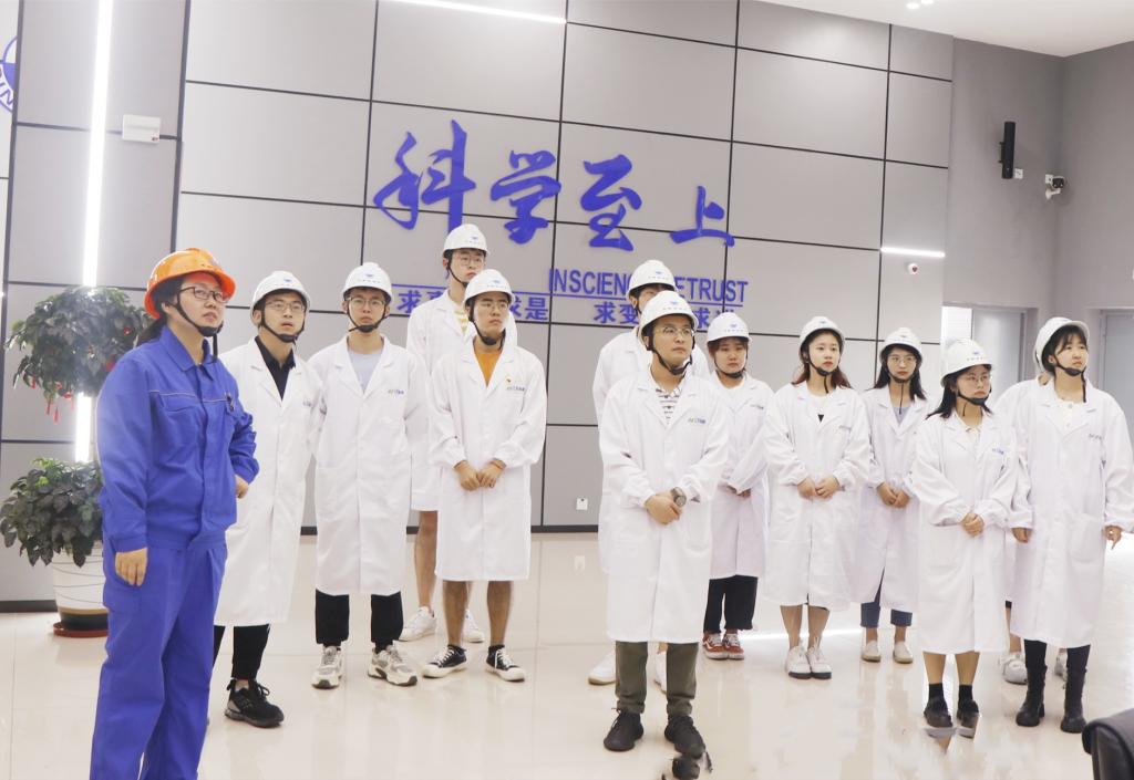 在中化高纤党员代表牛晓星的带领下,色情导航 师生一行首先参观了公司的科技展厅、DCS中控室和纺丝车间,对芳纶的生产和应用有了更直观和深入的了解。同学们纷纷表示,芳纶智造工厂的概念颠覆了他们对传统工厂的认知,对这样的工作环境和机遇充满向往:致力于自己热爱的纤维材料领域,为国家新材料的发展贡献力量。