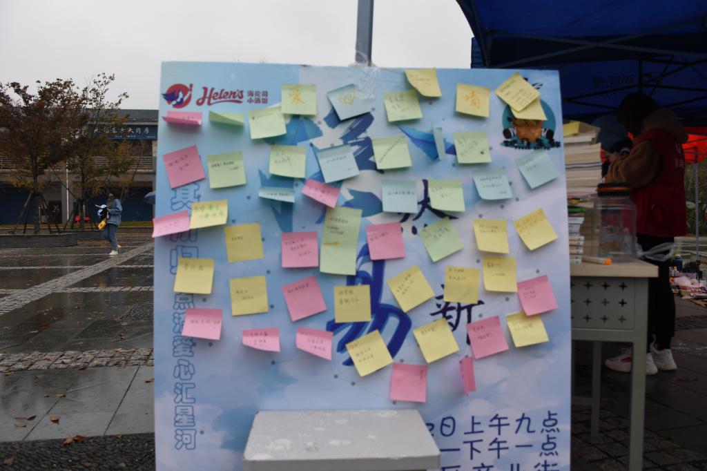 青年志愿者协会的志愿者们收集到了各类闲置物品。其中包括:毛绒玩具、名著类书籍、生活用品等。活动当天,参与以物换物的小伙伴,以及向偏远地区献爱心的同学们都十分积极,虽然活动当天细雨蒙蒙,但仍然没有浇灭江南学子参与活动以及传递爱心的热情。本次活动还专门设置了爱心墙,爱心墙上的文字虽然简短淳朴,但字里行间透露出着江南学子对偏远地区孩子们的关心,相互之间鼓励奋进的话语,以及对本次活动的大家赞赏。