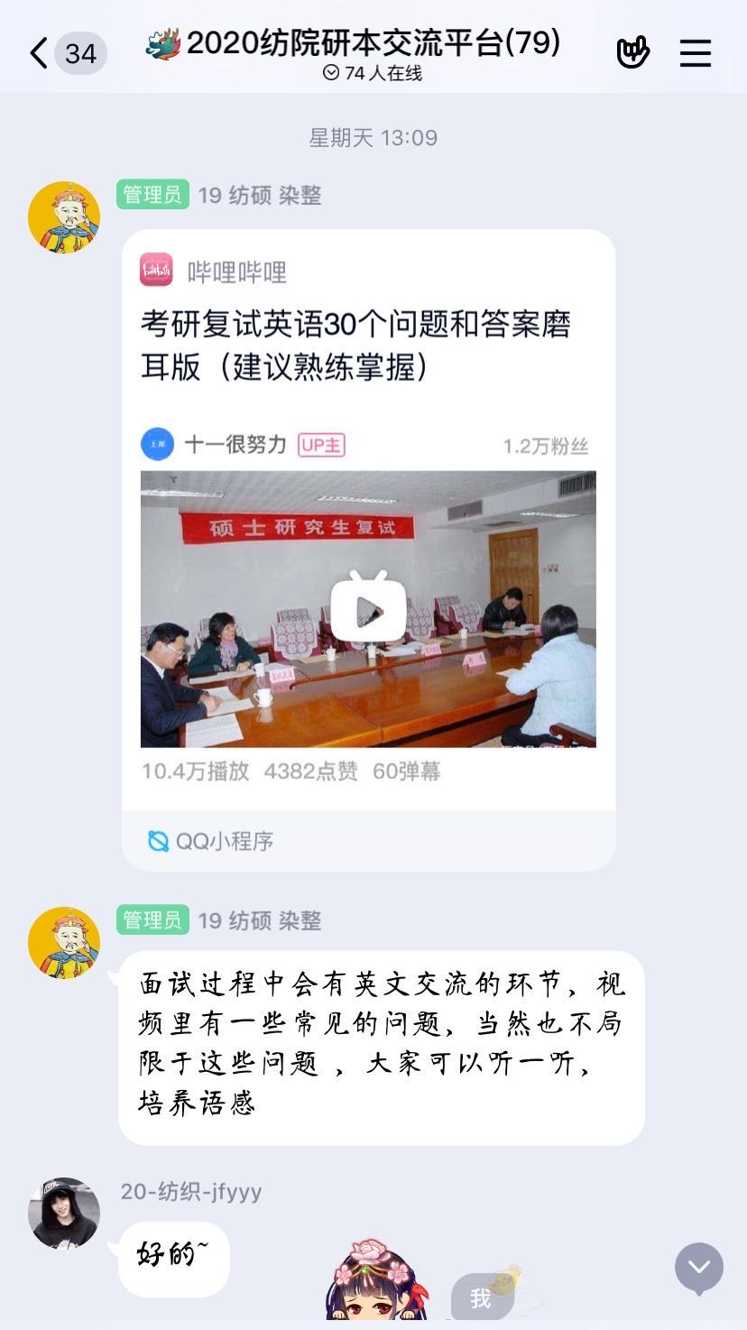同学们在群内在群内积极提问交流,纷纷表示本次“云”辅导使其受益匪浅,明确了复习方向,对考研复试充满了信心。