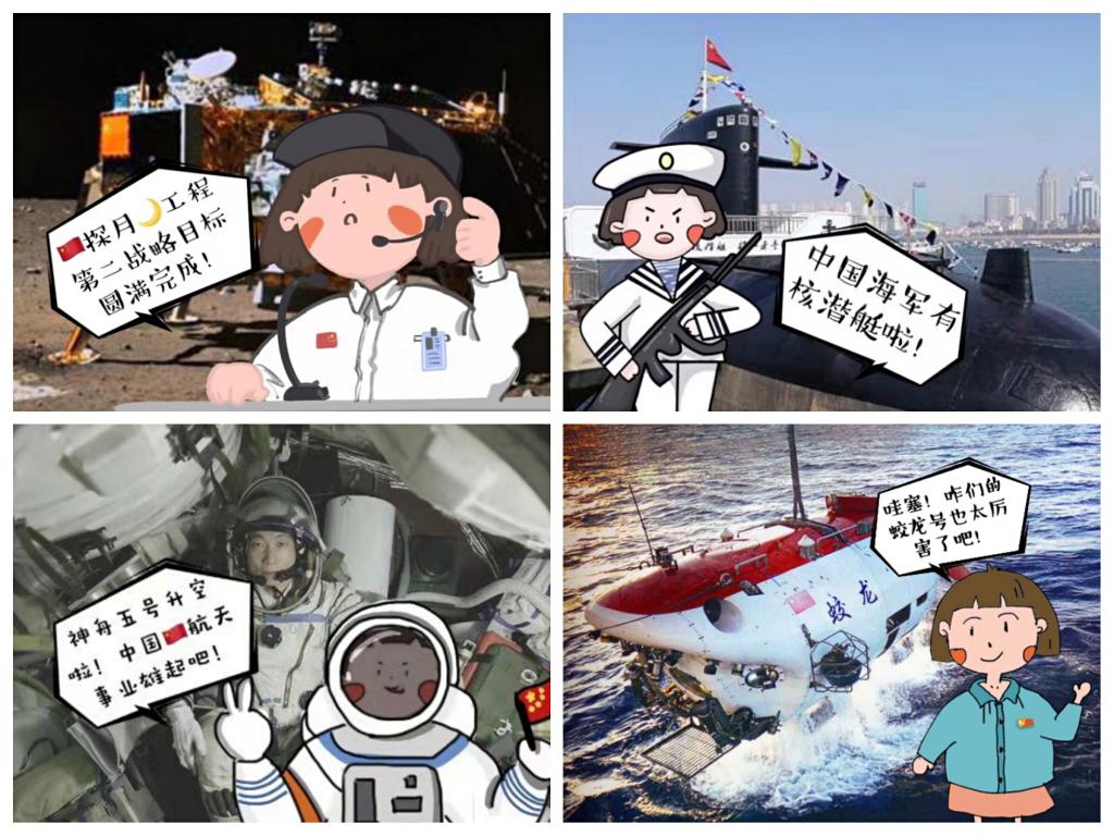 纺织服装学院本科生低年级党支部党员作为“阿中哥”的“铁粉”,拿起画笔,把对“阿中哥”的爱凝成笔下一位追寻强国梦的女孩——小纺。她穿上那个时代或是流行服装,或是工作制服,与珍贵历史合影,以回溯“阿中哥”风雨兼程、砥砺前行的伟大历程,全面呈现“阿中哥”70年发展成就。