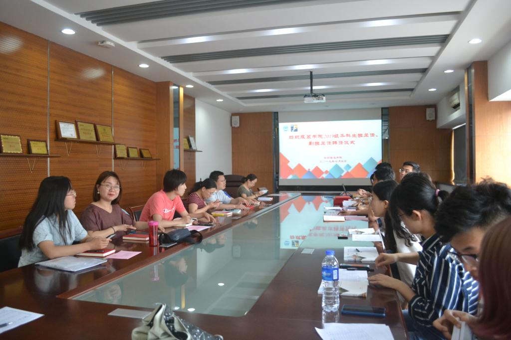 本次会议以2019年迎新工作安排讨论为收尾,各班级班主任、副班主任大致了解迎新工作的具体安排,并明确了各自的分工,聘任仪式在热烈的掌声中圆满完成。