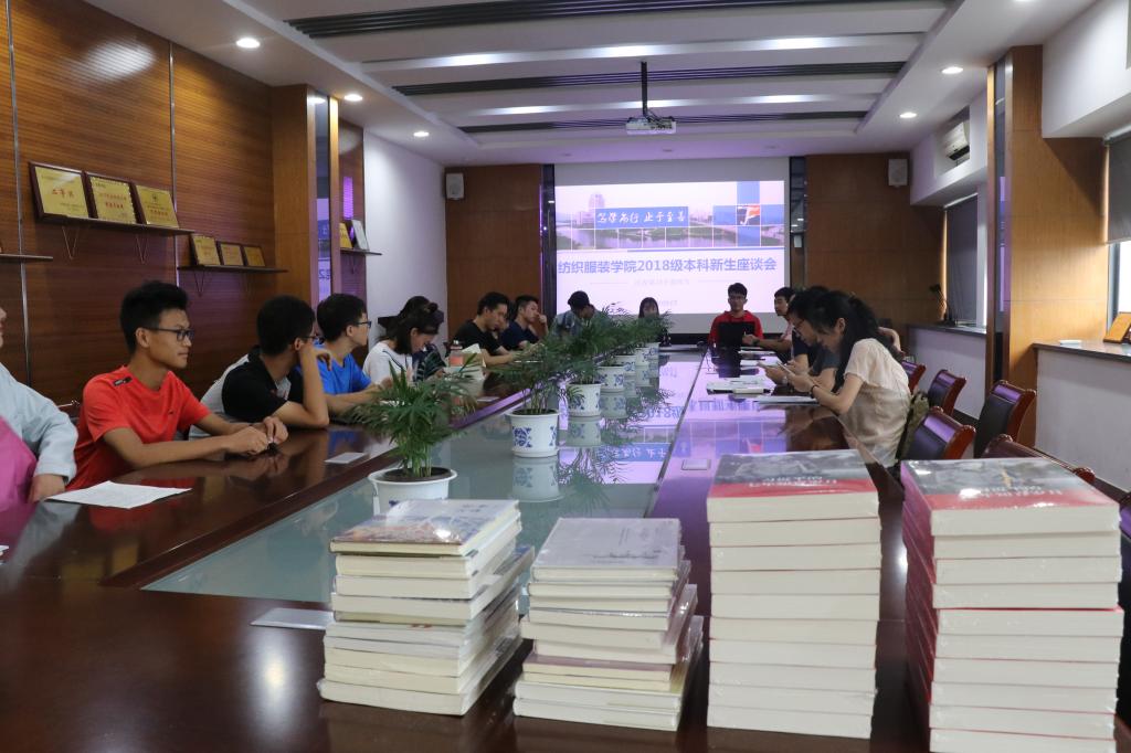 在A306会议室召开了2018级本科新生代表师生座谈会。院党委书记张菁,院长助理、纺织系教师代表傅佳佳,轻化系教师代表许长海,“我最喜爱的老师”获得者、服装系教师代表薛哲彬来到同学们中间,与17名学生代表进行了面对面交流。座谈会由院党委副书记、副院长周云龙主持。