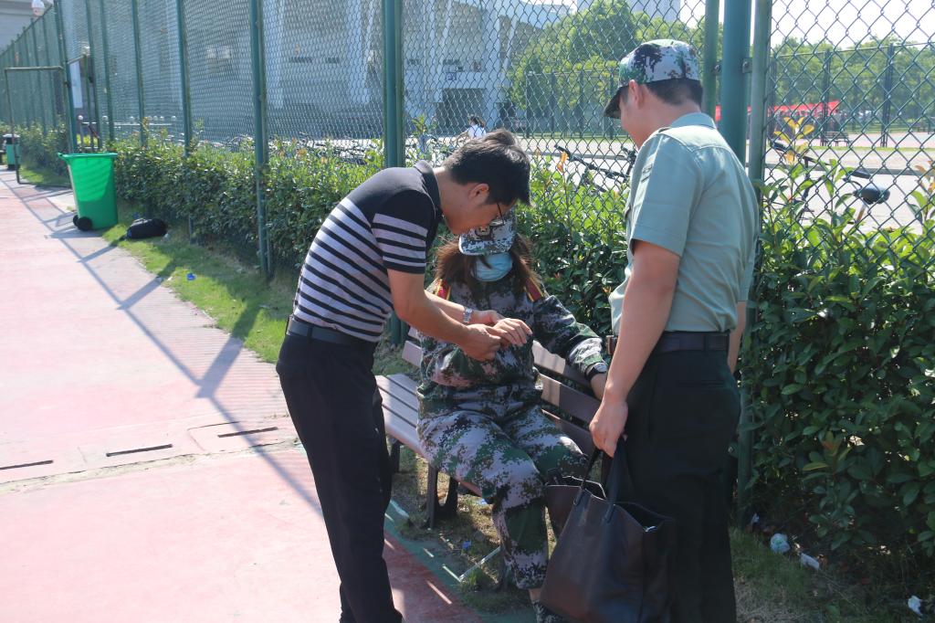 炎炎夏日,哪怕胳膊酸了,哪怕汗如雨下,参训学生们都始终坚持刻苦训练。“流血流汗不流泪,掉皮掉肉不掉队”,在这种精神力量的指引下,纺服学院参训学生必将以昂首挺胸的姿态活跃于军训中。