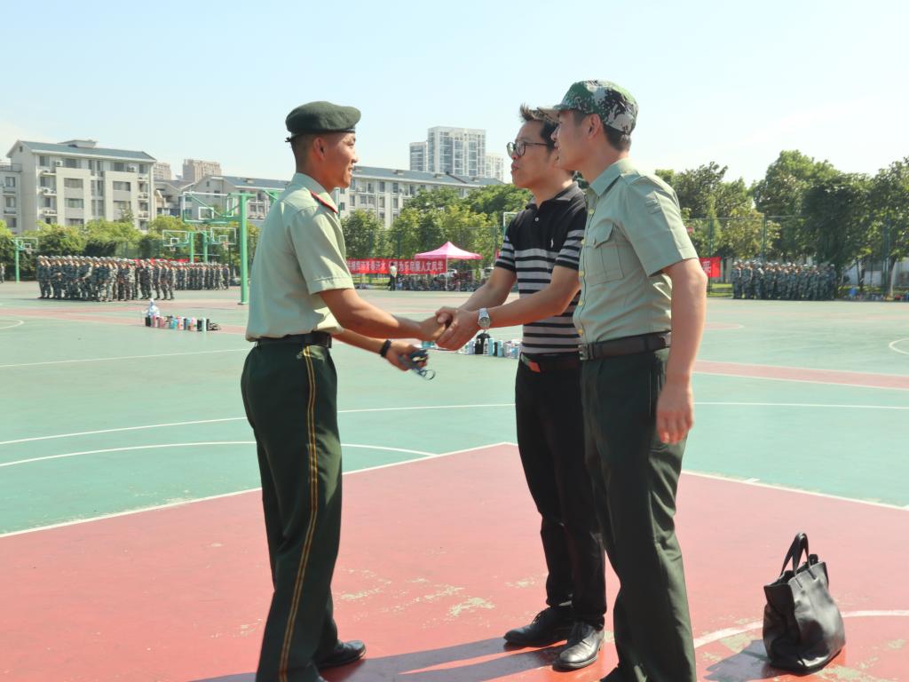 8月24日上午,为鼓舞士气,纺织服装学院党委副书记周云龙来到军训场地检查指导2018年学生军训工作,检验学院参训学生军训成果。