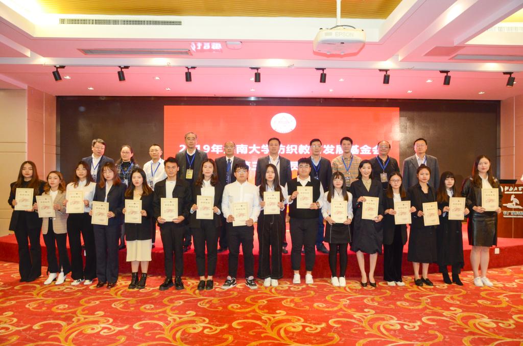 大会对2019年新增的14名新会员颁发了会员证,对2019年度杰出会员颁发了纪念奖杯。会上对2018年-2019年度在学院教育事业发展中,表现突出的教师、学生进行表彰和奖励。根据《色情导航 纺织教育发展基金会奖学奖教实施条例》,2019年度共评选出奖学金获得者134人次,奖教金获得者6位,在提高奖学总额的同时扩大学生受奖面,充分发挥基金会对的育人工作的大力支持。大会还进行了基金会理事会的换届改选,以及章程、奖学奖教实施条例修订的审议与表决。大会选举产生了第三届理事会理事、副秘书长、秘书长、常务理事、副理事长、理事长等。副理事长苏州安派精密电子有限公司董事长邵太春先生代表新一届理事会致辞,充分肯定了基金会弘扬与传承纺服“诚实、踏实、务实”的精神与彰显纺服“团结、奋进、自强”文化的特色与理念,并表示,将不忘初衷,继续做好基金会的各项工作。