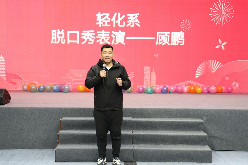 趣味游戏环节由晋阳、朱博老师主持。猜谜语、踩气球、抢凳子、掼蛋比赛、卡拉OK等,在场老师踊跃参与,引得欢笑不断、叫好连连。轻化系教师顾鹏带来精彩的脱口秀节目,行政实验教职工表演了小合唱《明天会更好》,大家在欢乐祥和的氛围中,谈工作、聊家常,互相祝福、相互勉励。