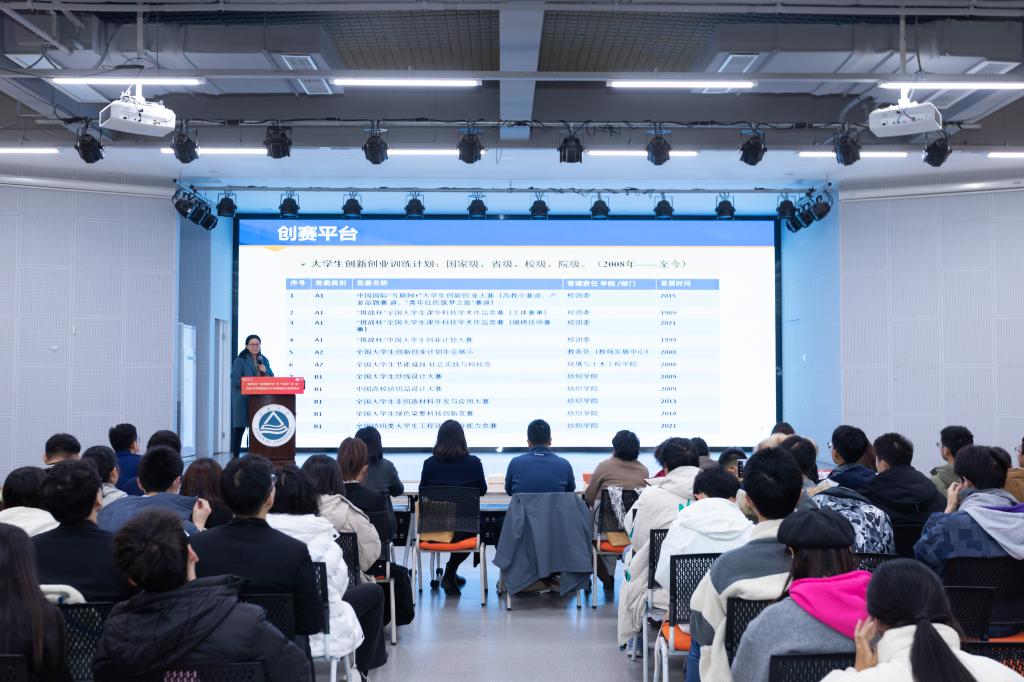 杨瑞华教授做《专业为基织就梦想,竞赛牵引创出未来》的主题分享。全国大学生创新年会获奖项目负责人王艺博做创新创业经验分享。三场分享分别从创新思维培养、创新项目开展实施和项目成果展示三方面为同学们后续顺利开展创新创业训练打下了坚实基础。
