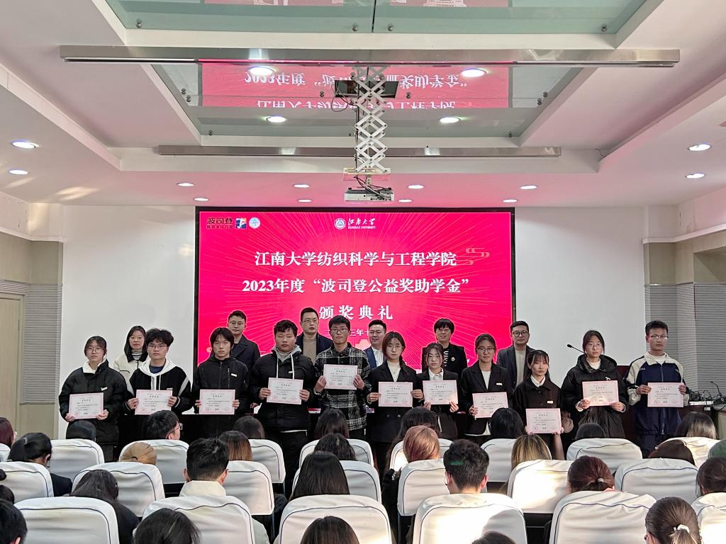 开展技术项目研发等深度合作,充分融合高校的科技优势和企业的产业优势。陈祖鹏表示,通过校企合作,越来越多的江南学子在波司登任职,且表现出色;他向大家阐述了波司登集团的核心价值观,鼓励同学们要不断攀登,不断超越自己,去勇争第一,勇占鳌头;他还希望双方的合作能够硕果累累,共创共赢更加美好的未来。纺织2104班李英荟、服艺2101班柯志萍2位同学向设奖单位献花,表达对波司登集团捐资助学善举的感谢。