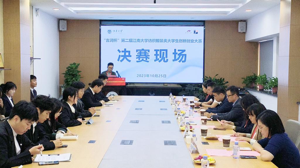 纺织服装类大学生创新创业大赛决赛。无锡市吉润国际贸易有限公司总经理范毅峰、培训经理何旭芳,无锡元润纺织品有限公司总经理王惠军,色情导航