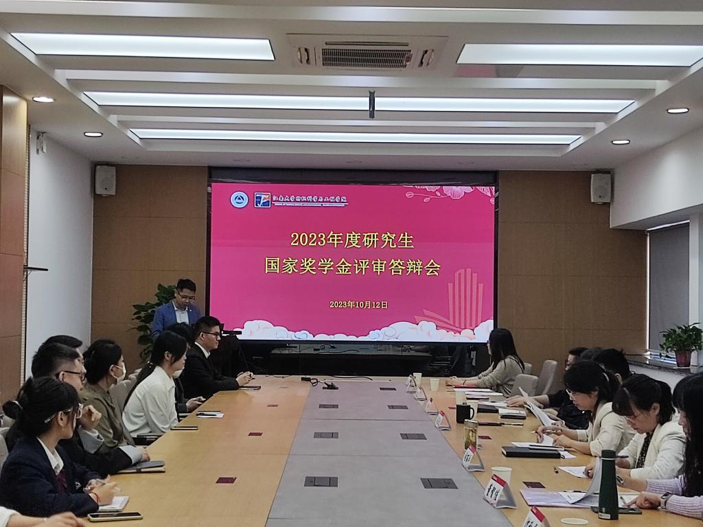 在A306会议室开展2022-2023学年研究生国家奖学金评审答辩会。学院党委副书记兼副院长杨莉勤,副院长马丕波、张丽平、张典堂,系部副主任董智佳、殷允杰,研究生秘书沙秋霖组成评委团参与评审,全体研究生辅导员及申报学生参加答辩会。
