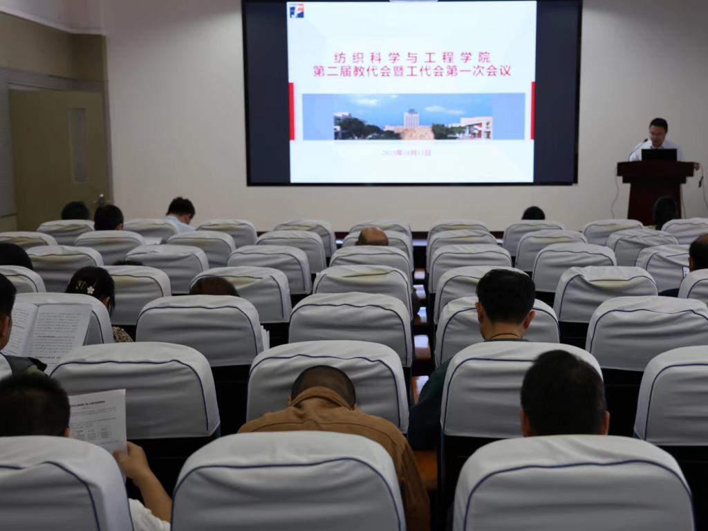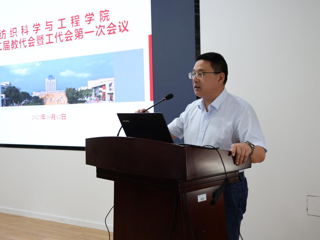 会上,院长付少海作《2020-2022任期行政工作报告》,全面回顾了过去三年学院工作,围绕打造一流纺织教育科技人才高地、构建特色学科发展新格局、创新师资队伍建设机制、持续提升国际影响力等方面提出未来五年的发展设想。分工会主席卢雨正作分工会三年工作总结,并就进一步围绕中心、服务大局,提出分工会未来重点工作方向。