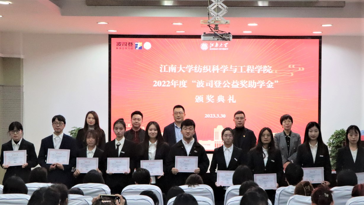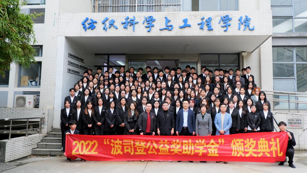 教育事业的发展和纺织服装行业人才的培养表示衷心的感谢,对获奖同学表示祝贺。同时,陈书记也提出了三点期望:第一、明心知往,力行求至;第二、明德敏学,穷高极远;第三、明理善思,责有攸归。陈书记希望同学们将这份爱心与责任传递下去,秉承“博学慎独,经纶天下”的院训,弘扬波司登“温暖全世界”的情怀,让理想成为新时代征程的航灯,让奋斗成为洋流中的基石,让自己成为青春路上的掌舵人!