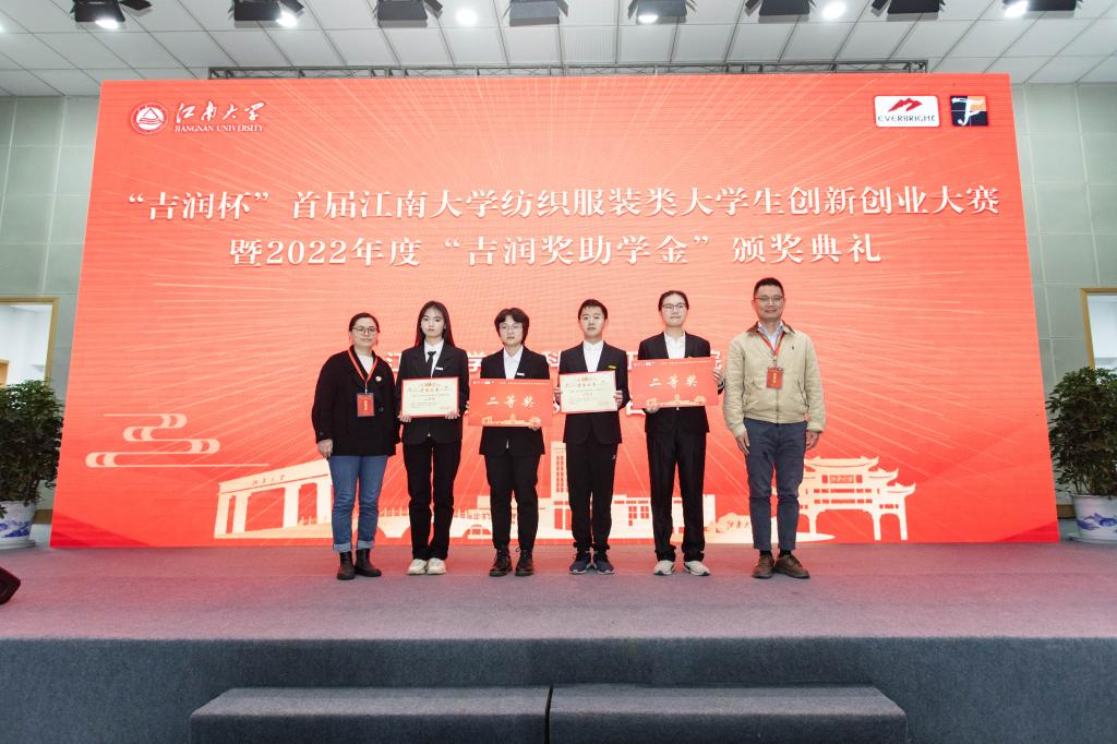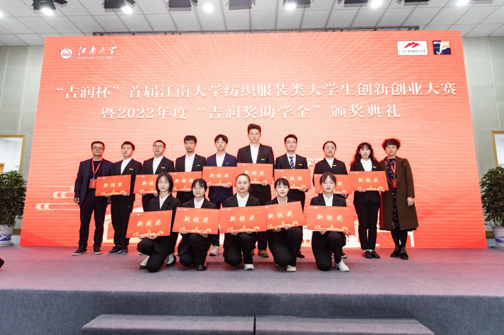 纺织服装类大学生创新创业大赛暨2022 年度“吉润奖助学金”颁奖典礼在学院C区活动中心举行,近100名师生参加活动。无锡市吉润国际贸易有限公司总经理范毅峰,销售总监王芳,设计师陈紫薇,培训经理何旭芳,吉润集团供应商代表陈文锋;色情导航