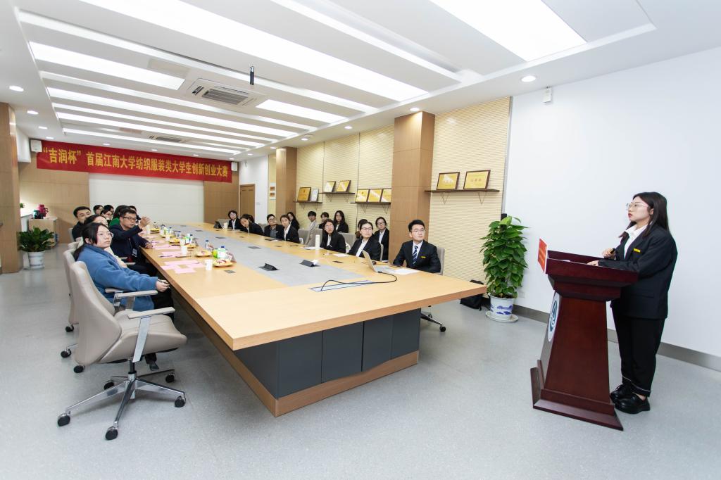 纺织服装类大学生创新创业大赛决赛。经前期初赛,共选出10件作品入围决赛,通过答辩展示,专家评审组对入围决赛作品进行评审,现场计分,最后由专家评审组讨论,评选出特等奖1项、一等奖2项、二等奖2项、三等奖3项、优秀奖2项。