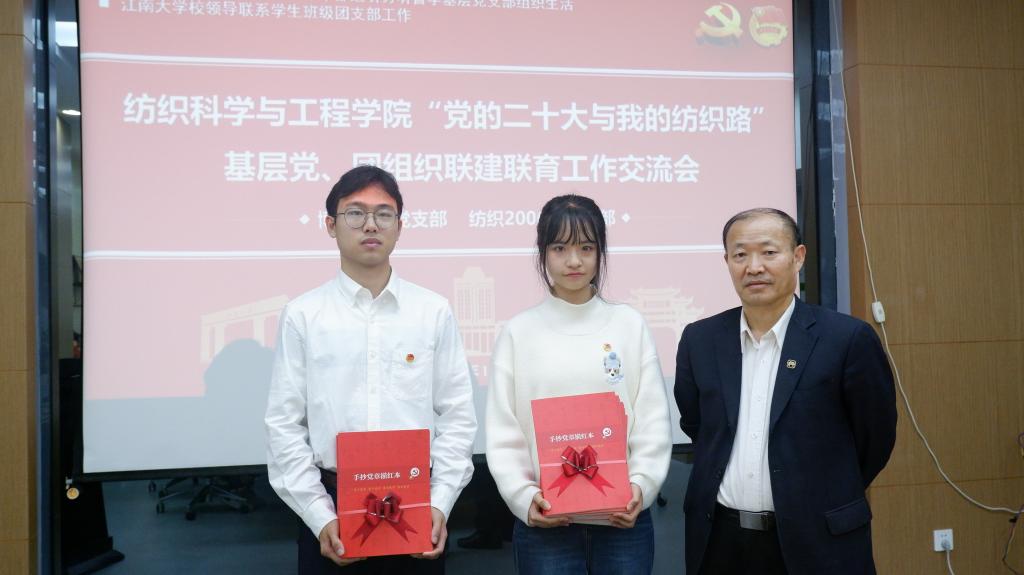 宣讲党的二十大精神,并参加学院“党的二十大与我的纺织路”基层党、团组织联建联育工作交流会。学院党委书记张菁,校团委副书记杨飏,学院党委副书记、副院长陈艳君,分团委书记陈裕,博士第二党支部全体党员与纺织2006班团支部全体团员青年参加上述活动,活动由学院学生会执行主席、纺织2006班班长胡紫瑞同学主持。