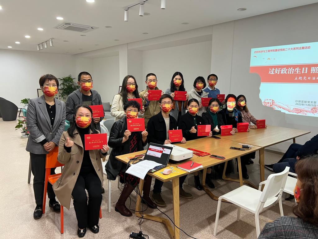 行政实验党支部举行“过好政治生日 照亮奋斗之路”主题党日活动,支部全体党员集体学习党的二十大精神,并为13位第四季度入党同志共同庆祝“政治生日”,通过本次活动,感悟时代精神、汲取奋进力量。