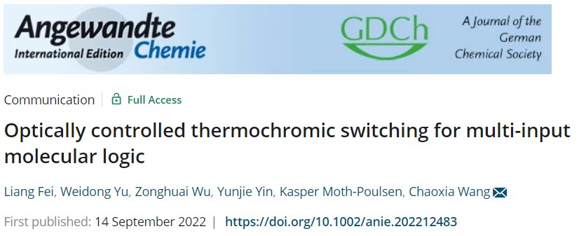 王潮霞教授团队在用于多信号输入分子逻辑的光控型温致变色开关研究方面取得重要成果。该成果发表在《Angewandte Chemie International Edition》,题为“Optically Controlled Thermochromic Switching for Multi-Input Molecular Logic”。