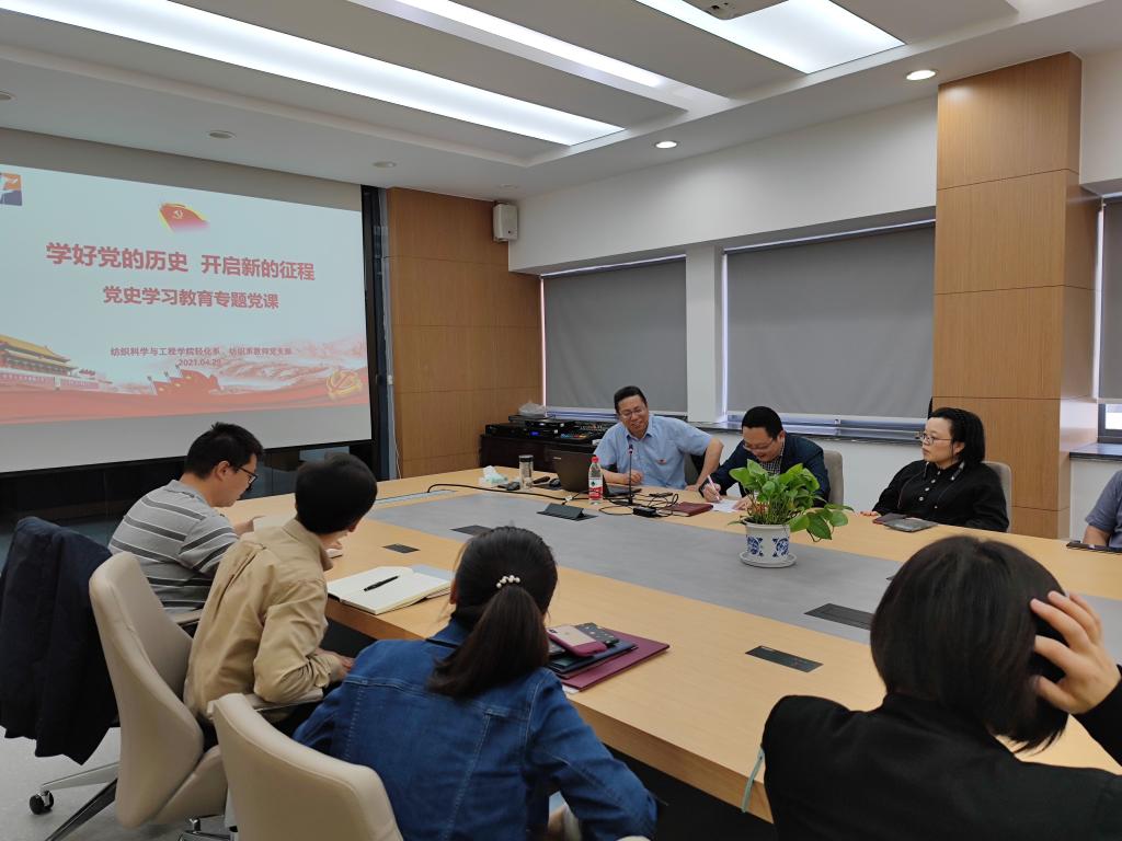 A306进行了“学好党的历史,开启新的征程”为主题的党史学习专题党课,邀请马克思主义学院陈绪新教授作题为“中国共产党百年辉煌的奋斗进程机器历史经验”专题报告。校巡听旁听督学组成员、校党委委员、科研院院长吴小俊教授到会督学指导,院党委书记张菁、轻化系支部联系领导副院长潘如如列席活动,副院长黄锋林、刘庆生以纺织系教师党支部普通党员身份参加了学习。会议由轻化系教师党支部书记张丹教授主持,两个党支部40余名教师党员参会。