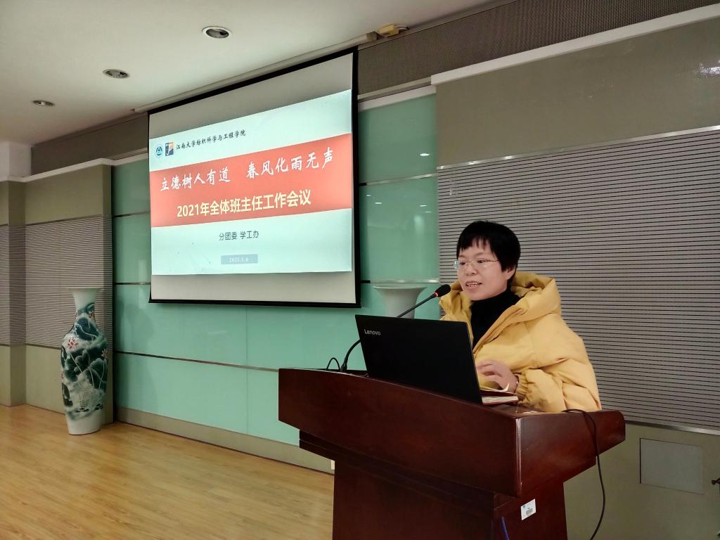 陈书记首先回顾了2020年学院学生工作十件大事,对全体班主任老师长期以来对学院学生工作的支持表示肯定与感谢。她指出,班主任老师可以有力培养学生的专业学习热情,助力提高学生升学深造质量;希望班主任老师加强与学工团队的沟通配合,为学生成长成才构筑多方位的保障体系。全体班主任老师要进一步提升使命感和责任感,真正成为学生的引路人和指导者。