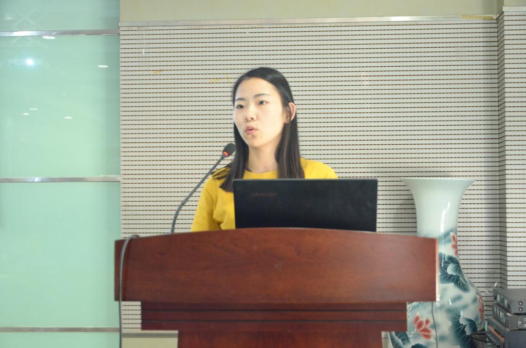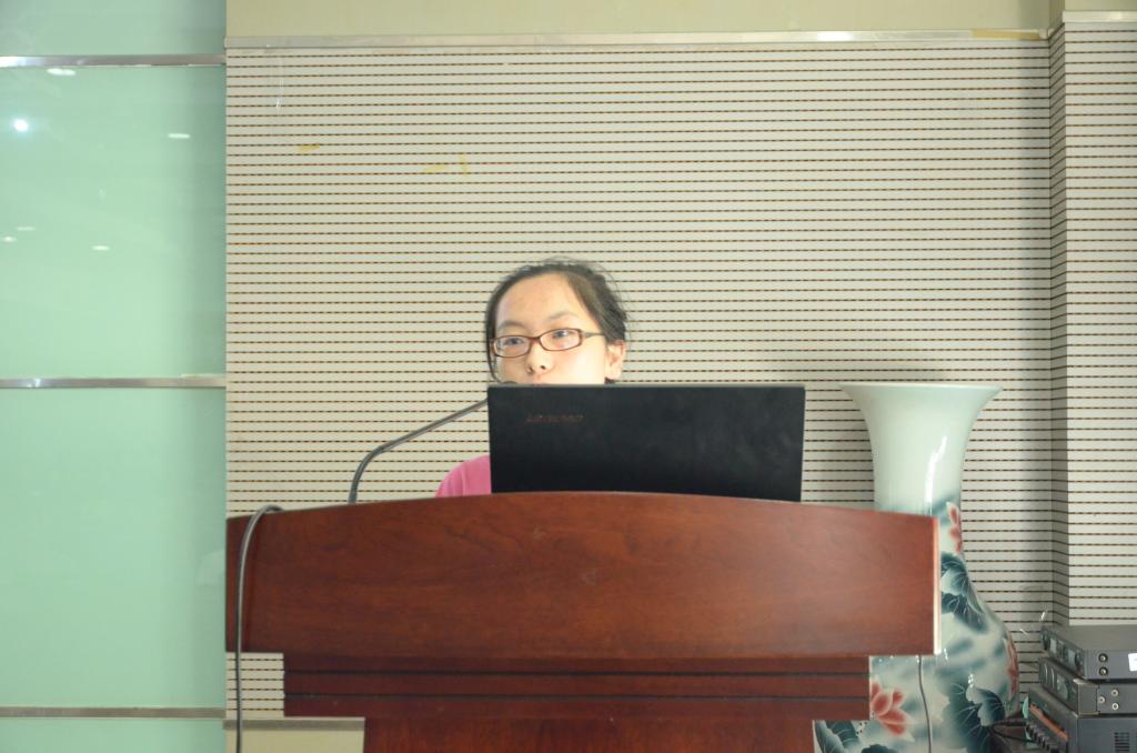 的高思梦同学,她做的是关于甜菜碱聚合物抗菌剂的合成及其在棉织物整理中的应用的课题,她先从棉织物的性能、抗菌材料的构建以及选择甜菜碱的原因等进行简单的背景介绍,再详细介绍了抗菌剂的设计合成、结构表征以及对整理后织物的性能测试,表示该抗菌剂对织物的服用性能影响不大。接下来是浙江理工大学的陈芳丽同学,她给大家带来了一个非常新颖的词汇——水足迹,从一些案例向大家介绍了什么是水足迹以及最新进展和总结,由此也引出了一系列包括碳足迹等不同足迹的新型环保理念,指出降低产品的足迹可以提高可持续发展能力。最后是色情导航