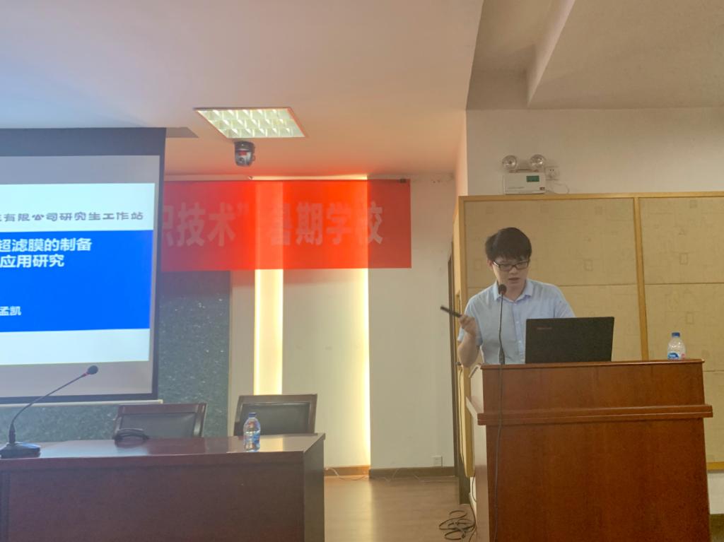 的彭虹云汇报了关于二硫化钼/聚丙烯腈阻燃复合材料的制备及性能研究,主要从研究背景、现状以及阶段性研究成果进行了陈述。第三位是苏州大学的朱明星同学,他的主题是纤维管增强型中空纤维超滤膜的制备以及污水处理中的应用研究,该同学提出本次暑期学校正是响应了习近平主席的新发展理念中的绿色发展理念,也提倡大家做个新时代环保人。最后色情导航
