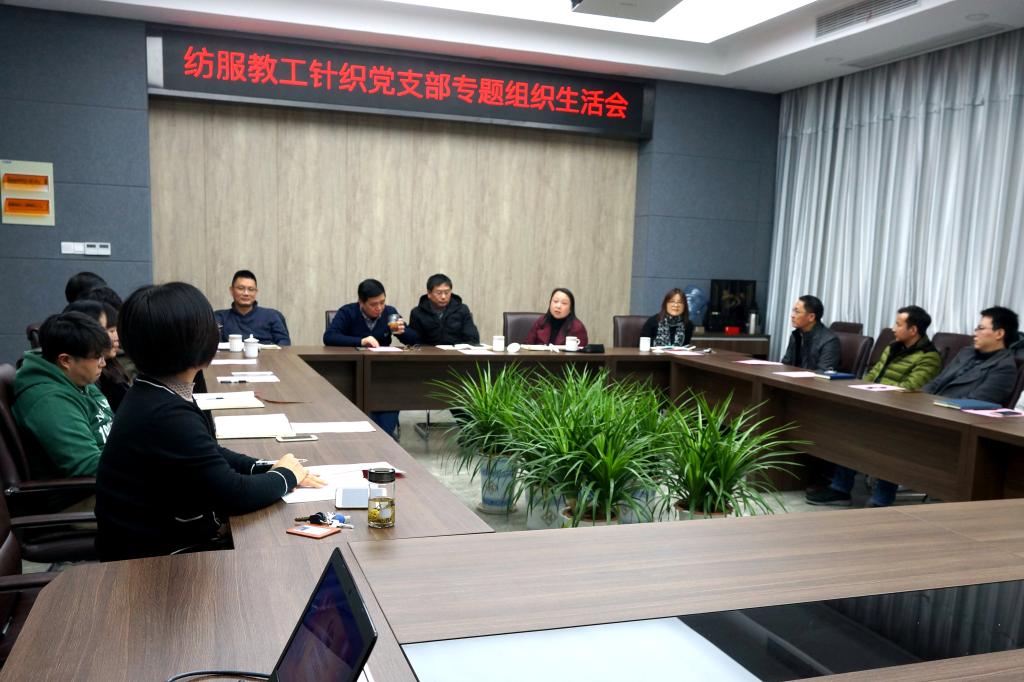 12月12日下午,纺织服装学院教工三支部“弘扬爱国奋斗精神,建功立业新时代”专题组织生活会在纺服B101会议室召开。副校长田备、院党委书记张菁、副院长黄峰林、针织中心主任蒋高明、院党委委员丛洪莲、纺服教工三支部全体党员以及针织中心博士生党员参加了本次支部专题组织生活会。