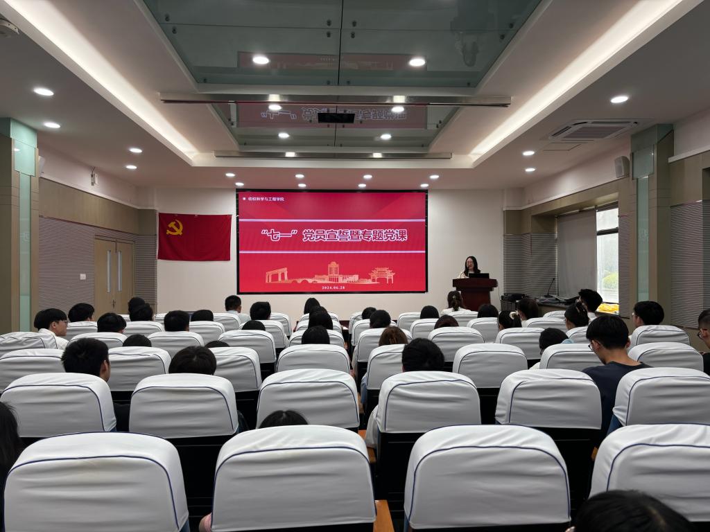 在A103会议室举行“七一”入党宣誓仪式暨专题党课。学院党委副书记、副院长杨莉勤,专职组织员张志新,研究生辅导员伍胤鸿,学生党员代表以及全体中共预备党员参加活动。活动由研究生辅导员孙慧主持。
