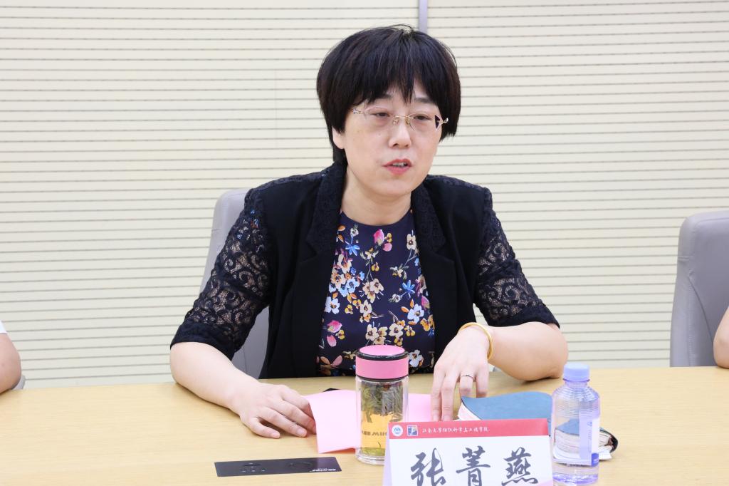 进行调研交流。党委书记张菁燕、院长付少海、副书记杨莉勤、副院长马丕波与张典堂,以及江苏省纺织工程学会针织、服饰、科普、学术等专委会负责人参会。会议由张菁燕主持。