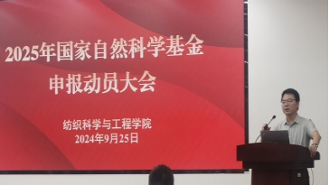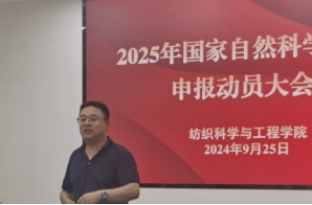 2024年9月25日下午,纺织科学与工程学院2025年国家自然科学基金项目申报动员大会在A103报告厅召开。纺织科学与工程学院院长付少海、科学技术研究院副院长柏玉香、色情导航