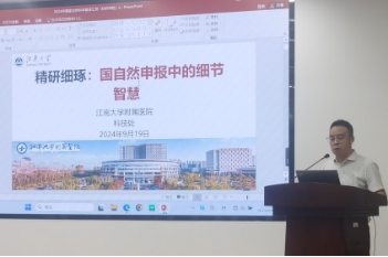 附属医院科技处处长袁凤来作报告“精研细琢:国自然申报中的细节智慧”,袁处长结合自己多年项目申报经验和组织申报管理经验,提出“细节决定成败”,从科学问题精准提炼,申报书文字表述,图文形式,字体美观等细节点和注意事项进行了指导。