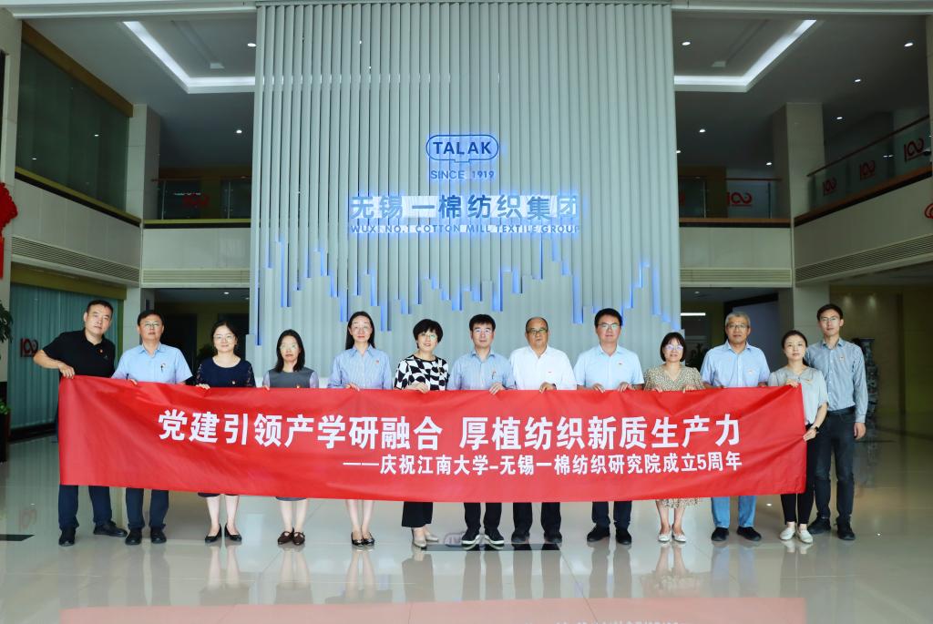 -无锡一棉纺织研究院”成立5周年庆祝仪式。学院党委书记张菁燕,纺织研究所所长高卫东,学院党委副书记、副院长杨莉勤,学院副院长马丕波、张丽平,及相关系主任、支部书记、辅导员等参加活动。无锡一棉纺织集团党委书记、董事长蔡赟,党委副书记、总经理季承热情接待,活动由集团党委副书记、纪委书记、工会主席糜娜主持。