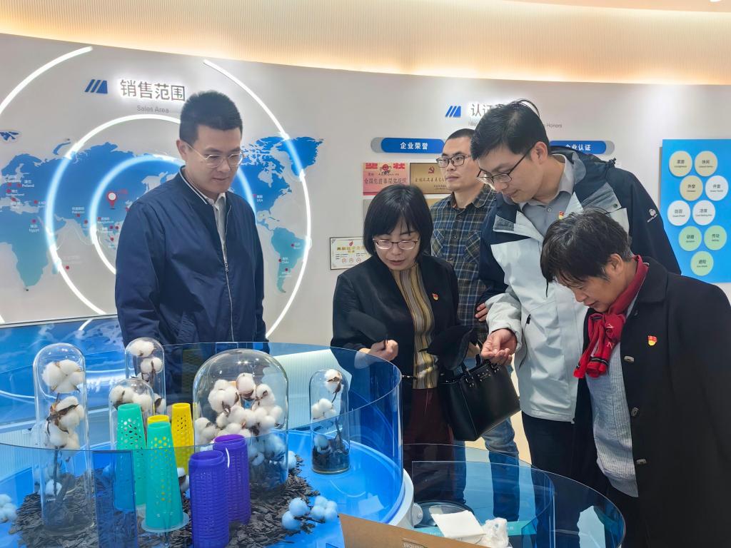 党委副书记、副院长杨莉勤,及纺织系教师党支部一行赴江苏大生集团有限公司开展“探寻江南纺织精神”主题党日活动,开展了一系列党组织联建、产学研对接及红色教育活动,旨在进一步挖掘江南纺织精神,促进校地产学研深度融合,加速科技创新成果转化,并强化校企联合人才培养机制,共同探索党建引领下的高质量发展新路径。大生集团党委书记、董事长漆颖斌,党委副书记、总经理包卫东,党委委员、副总经理赵志华,党委委员、副总经理陈建,生产技术部部长王小舒,生产技术部副部长李兰女,党政办公室主任潘宇等参加了座谈交流。